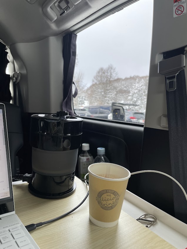 以前の車にはキッチンやシンクが付いていましたが、デリカに乗り換える時に思い切って断捨離しました。 その代わり、お湯だけは沸かしたい。でも、大きなポットは場所を取って邪魔になる…。
